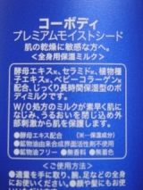 白くま化粧品さんのコーボディ プレミアムモイストシード 使ってみました 髪、顔、ボディ 全身に使えるので、乾燥するこの冬に大活躍なスペシャルな乳液です 最新技術のエマルジョン処方 潤い成分もたっぷり 酵母、セラミド、種子エキス、コラーゲン配合 浸透感がとっても良くて、ベタつかず… 2013/01/18