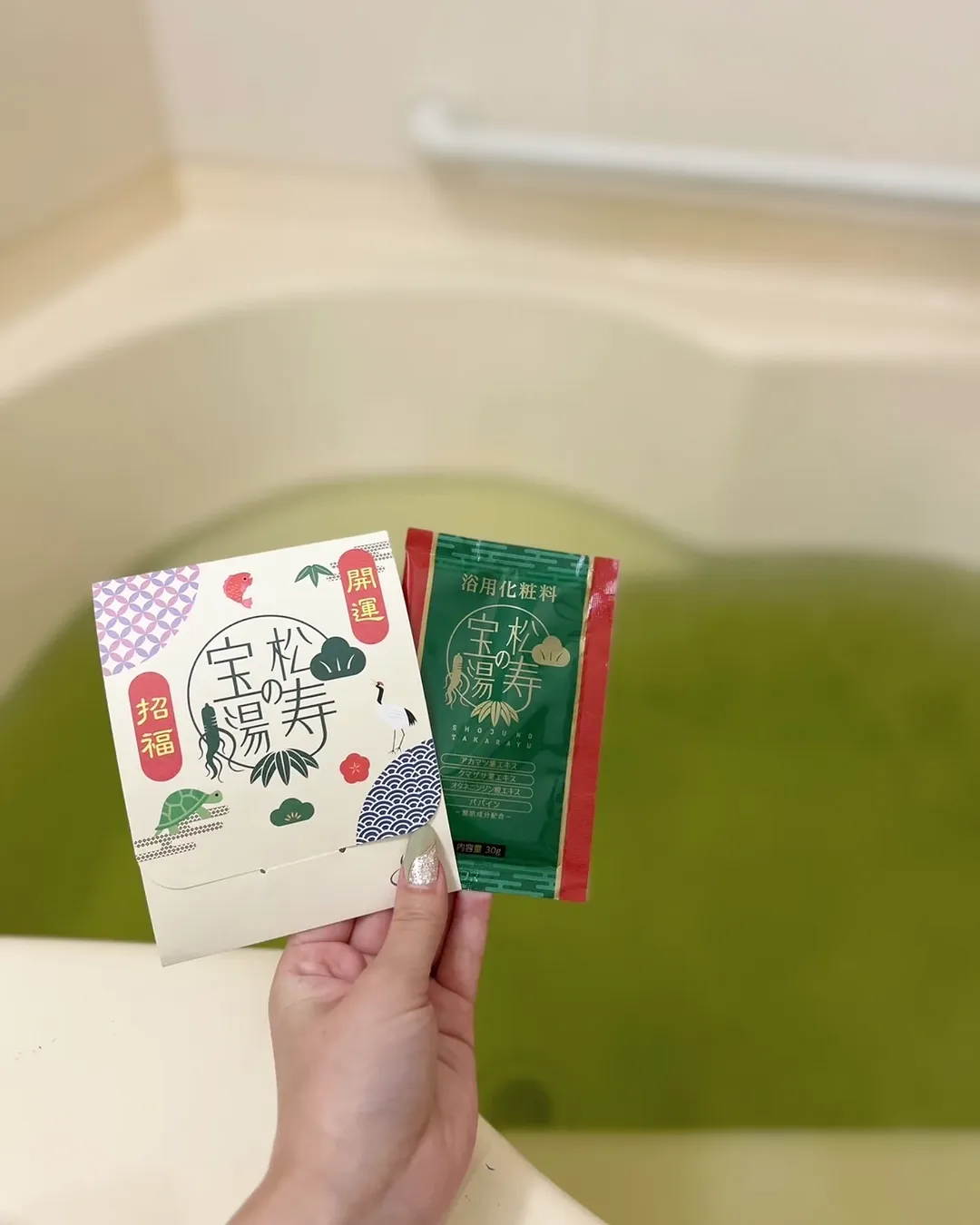 \医薬品製造会社の和漢薬研究所から発売する入浴剤/ 【松寿の宝湯(しょうじゅのたからゆ)】 冷え性なので、毎日お風呂であたたまる時間が大好きです✨ 【松寿の宝湯】は、医薬品製造会社から発売されている入浴剤で、からだがポカポカになりそうなイメージだったので使ってみました! お湯は緑色になります。 森林のようなフレッシュな香りがしました🌿 とてもリラックスできます♪ パッケージに鶴や亀などが描かれていて 縁起の良さそうなお風呂になりました😊 #PR #和漢薬研究所 #松寿の宝湯 #入浴剤 #入浴剤ギフト #湯上り #monipla #shizenyaku_fan