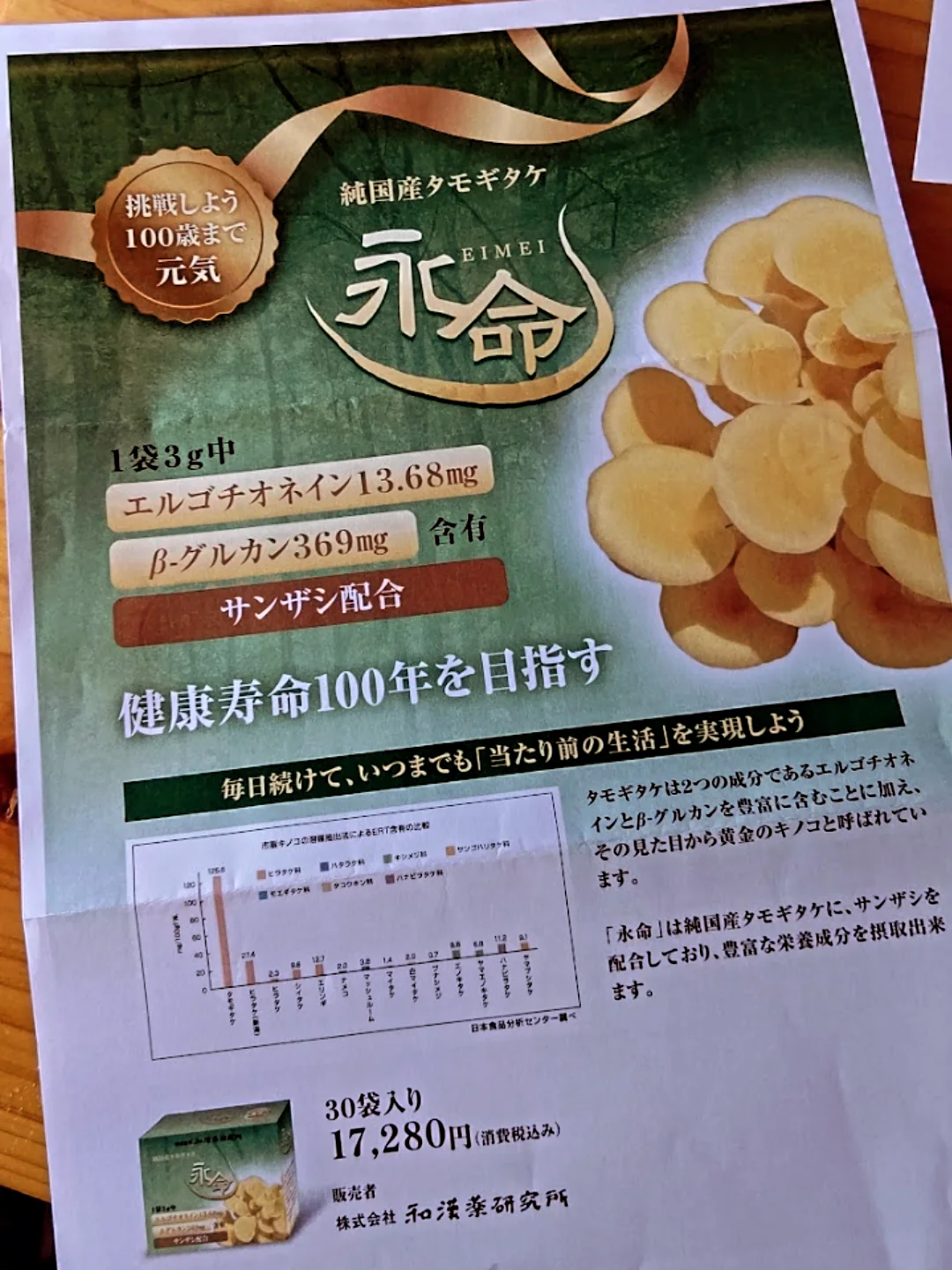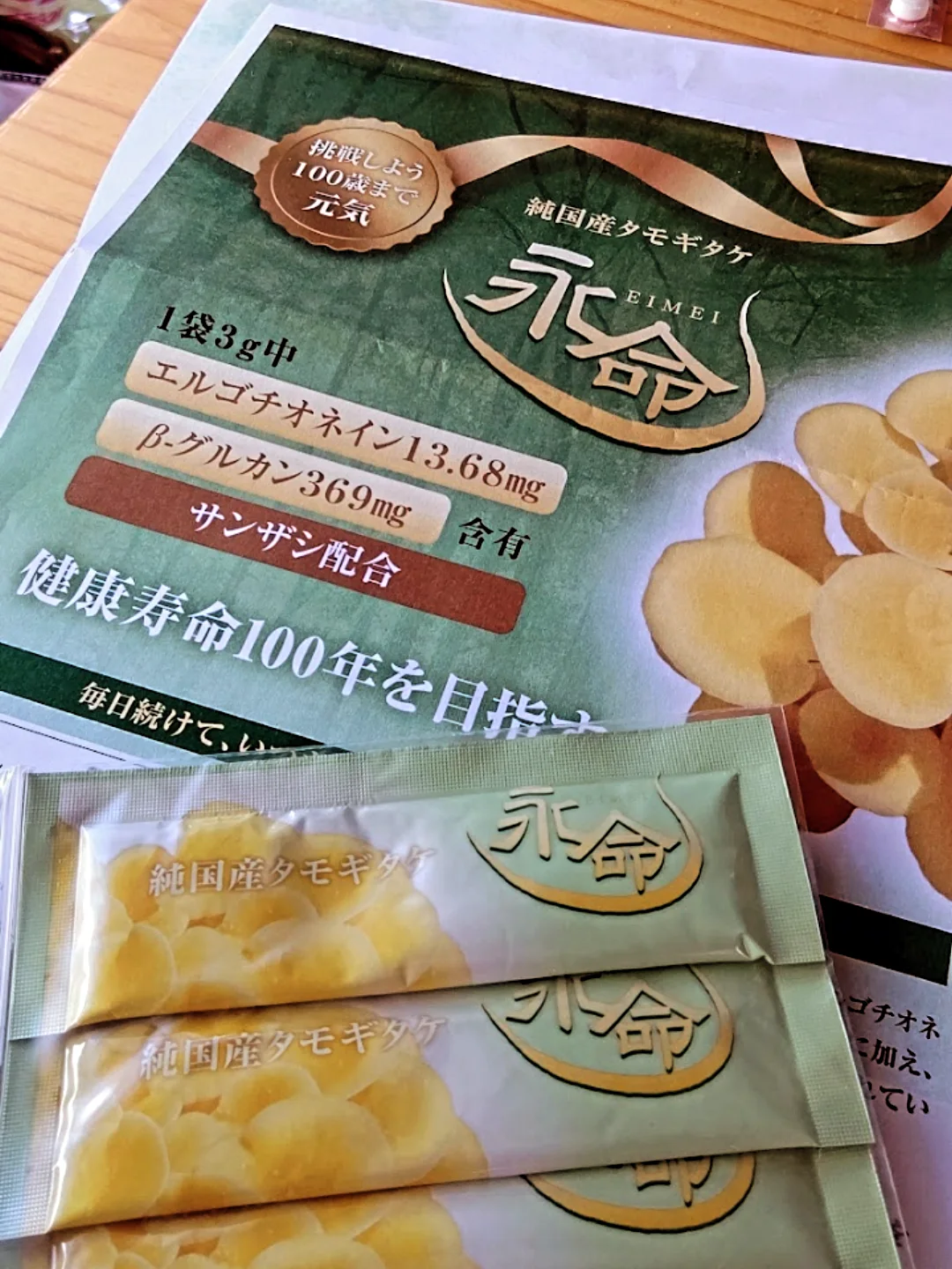 高用量エルゴチオネイン入りの 純国産タモギダケの健康食品🍄 キノコは免疫を高めたりする成分が入っていると聞きます そんな栄養価の高いキノコの中でも より抗酸化作用の高く 脳なとの神経細胞を強化する「エルゴチオネイン」が たっぷり入っているのが「タモギダケ🍄」 結構量の多い粉末で、飲むのに手間取りましたが 平均寿命と健康寿命に働きかけてくれるそうです。 人生100年時代にぴったりのきのこ🍄 そして、サプリメントですね😌 #PR #和漢薬研究所 #永命 #タモギタケ #エルゴチオネイン #人生100年 #健康寿命 #黄金のキノコ #ベータグルカン #monipla #shizenyaku_fan