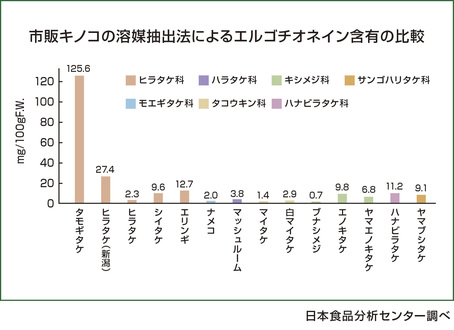キノコ類は栄養価が高く、ビタミンやミネラル類が豊富に含まれているものが数多くありますが、その中でもタモギタケは群を抜いて強い抗酸化作用をもち、脳などの神経細胞を強化するといわれている「エルゴチオネイン」が他のキノコに比べ圧倒的に多く含まれています。