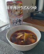 #PR \旨辛具合と ちょいつゆ にハマる!!/ 💁正田醤油【麺でおいしい食卓 旨辛肉汁うどんつゆ】を @eccoroco5 が食べてみました🎈 ▼ 今年に入ってから、すでに何箱もリピートしている肉汁うどんのつゆ♨️ 肉汁うどんとは…🍲 豚肉やねぎを加えた醤油ベースの温かいつけつゆに、 冷たくしめた太めのうどんをつけて食べるもの。 関東の武蔵野地域を中心に食べられている 郷土料理のひとつ⭐️ 別名「武蔵野うどん」とも呼ばれる料理✨ 正田醤油のうどんつゆシリーズは4種類あって、 どれも美味しいのだけれども! 全食食べた我が家の一番の推しは、この旨辛🌶️❤️ 唐辛子とにんにくの旨みがきいてて、 程よい辛みのつけつゆ🍲 つゆ自体の甘みもしっかり感じられて、 2種の醤油をベースに 枕崎製造鰹節と乾燥椎茸のだしも入ってるうまみが👍 そしてなんとも嬉しいのは、電子レンジ調理も可能なこと! つゆを水で割って、 豚バラ、長ねぎ、油揚げをカットしてイン。 (しかもつゆは、袋の中に残らず、シャバっと出しやすい!) レンジでチン♪ 冷凍うどんもチン♪ はい、完成〜 めちゃ簡単なので、夫もイソイソと自分でご飯にしてくれる〜🙌 シンプル具材で手軽に作れるのに、めっちゃ旨みある!!! というか、豚肉とねぎとつゆとの相性が抜群すぎるのよ〜👏 この2つの具材は必須!! アレンジしたいなと思いつつ、 まだ肌寒かったのでつけうどんにしちゃった…❤️ サラダうどんとかに使っても美味しそう😋🥗 寒い季節以外にも活躍してくれそう💪 ▼ 《商品詳細》-——————— 《商品名》 麺でおいしい食卓 旨辛肉汁うどんつゆ 《メーカー名》 正田醤油 《価格》 320円(税込) 《内容量》 180g(60g×3袋) ———————————— 🗣《この投稿で紹介した情報は掲載日時点のものです。情報が変わっている場合もありますので、最新の情報はHP等でご確認ください。また、こちらの投稿内容はあくまで個人の感想です。》 @shoda_shoyu1873 #PR #正田醤油株式会社 #正田醤油 #麺でおいしい食卓 #麺でおいしい食卓旨辛肉汁うどんつゆ #麺でおいしい食卓シリーズ #旨辛肉汁うどんつゆ #旨辛肉汁うどん #旨辛肉汁 #旨辛 #肉汁 #つけつゆ #麺 #うどん #麺料理 #うどんがおすすめ #正田 #醤油 #料理写真 #料理 #便利 #自炊 #旨辛い #旨辛バージョン #程よい辛さ #ピリ辛 #おいしいがうれしい #おいしいがうれしい正田醤油 #monipla #shoda_fan 2024/03/11