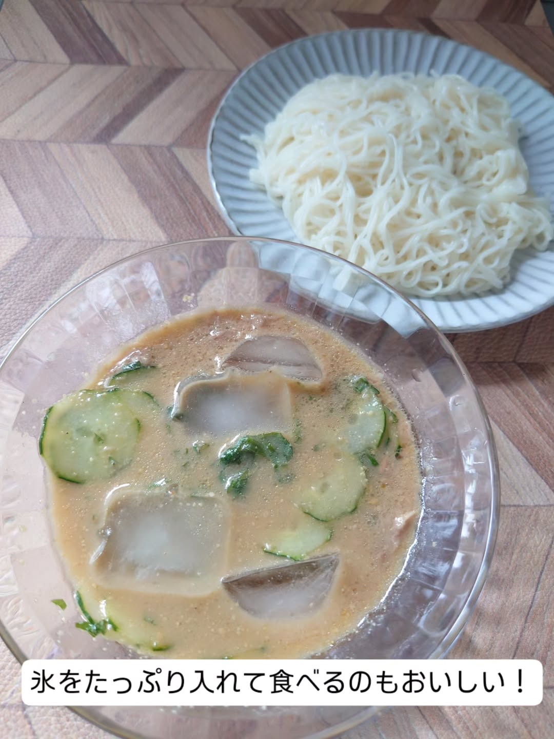 そうめんで作ってみたよ💙 〈麺でおいしい食卓〉 冷汁うどんつゆ(春夏限定) 埼玉郷土の味『冷汁うどん』。 米と麦の合わせ味噌をベースに練りごまとすりごまを合わせた、まろやかでコクのあるつけつゆです! さっと準備できて、家にあるお好みの野菜や薬味トッピングを楽しめるので飽きません👍 この日はきゅうり、ツナ、大葉でそうめんをつけて食べました♪ 氷たっぷりでひんやり、麺に風味豊かなつゆが絡んで美味しい😍 麺以外にも、冷汁ごはん🍚にしてみたり、坦々スープにしたりとアレンジもたくさん楽しめます✨ 夏の暑い日メニューにお困りの方も活用してみてください❕ #PR #正田醤油株式会社 #正田醤油 #麺でおいしい食卓 #麺でおいしい食卓冷汁うどんつゆ #麺でおいしい食卓シリーズ #冷汁うどんつゆ #冷汁うどん #冷汁 #ゴマ #胡麻 #ごま #麺 #うどん #うどんがおすすめ #麺料理 #つけつゆ #料理写真 #料理 #埼玉の味 #埼玉郷土の味 #薬味 #薬味たっぷりが美味しい #正田 #醤油 #シリーズ10周年 #おいしいがうれしい #おいしいがうれしい正田醤油 #monipla #shoda_fan