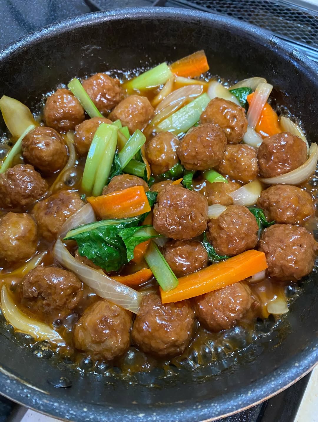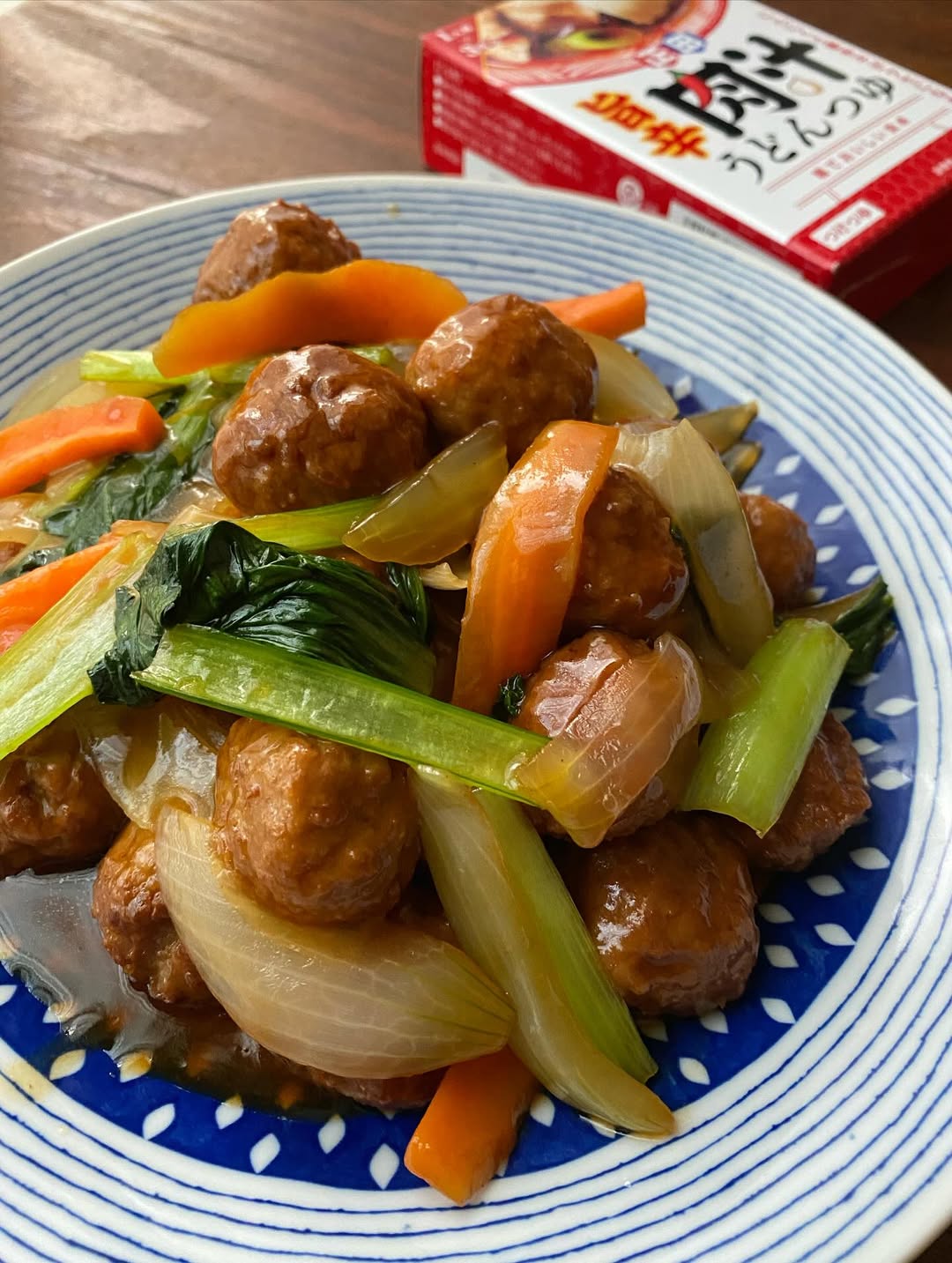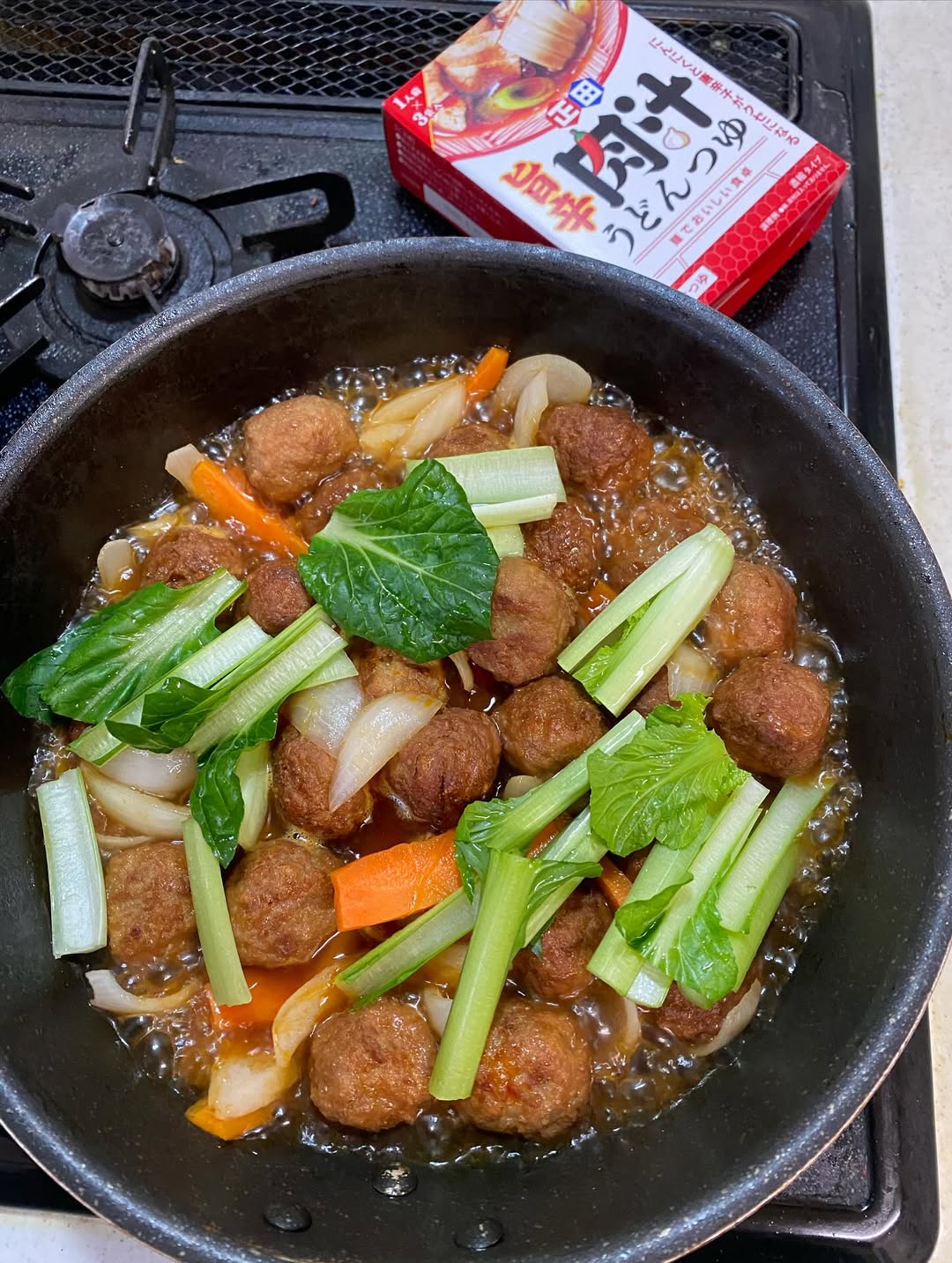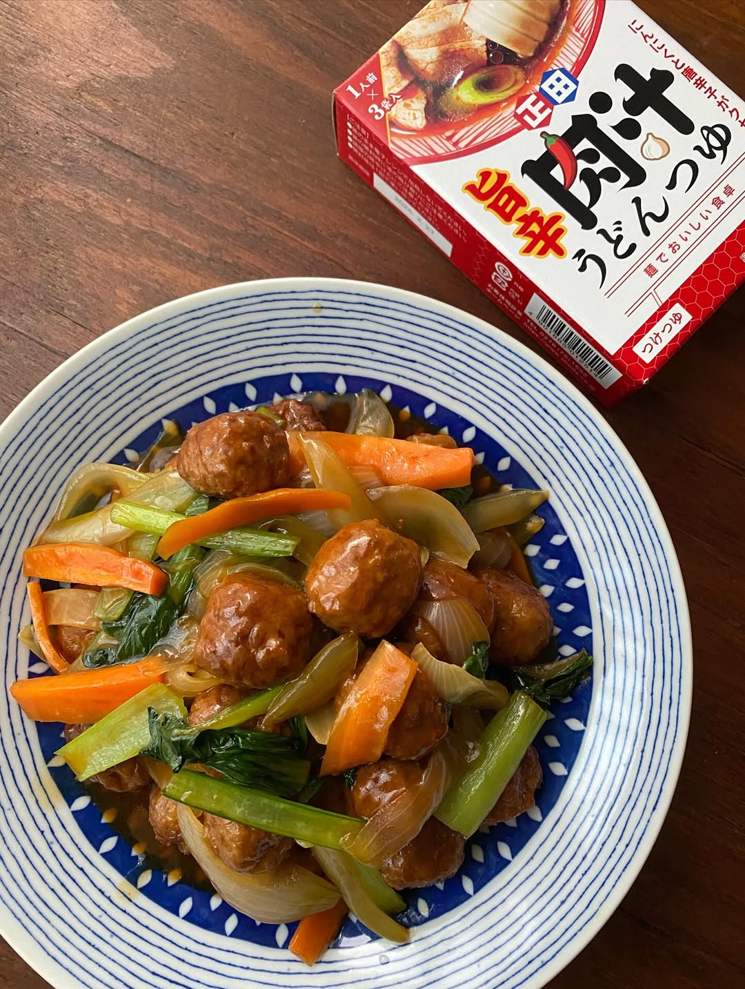 今日のご飯🍚 旨辛ミートボール @shoda_shoyu1873 さまの 旨辛肉汁うどんつゆ を使って味付け♪ 油で揚げた肉団子と 玉ねぎ、人参、小松菜を 一緒に炒めて 旨辛肉汁うどんつゆ1袋と 水180mlを加えて煮込み 水溶き片栗粉でトロミを付けたら完成 タレが美味しいので ご飯にのせて食べると最高に美味 ご飯がすすみます笑 #PR #正田醤油株式会社 #正田醤油 #麺でおいしい食卓 #麺でおいしい食卓旨辛肉汁うどんつゆ #麺でおいしい食卓シリーズ #旨辛肉汁うどんつゆ #旨辛肉汁うどん #旨辛肉汁 #旨辛 #肉汁 #つけつゆ #麺 #うどん #麺料理 #うどんがおすすめ #正田 #醤油 #料理写真 #料理 #便利 #旨辛い #シリーズ10周年 #程よい辛さ #ピリ辛 #おいしいがうれしい #おいしいがうれしい正田醤油 #monipla #shoda_fan
