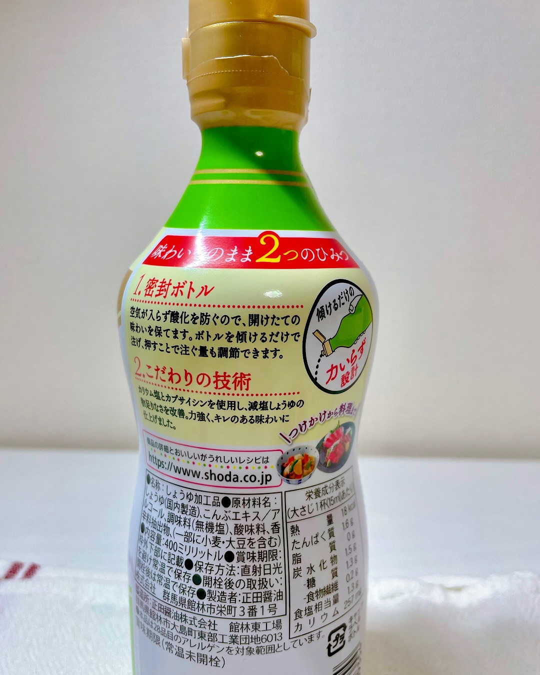 正田醤油株式会社さんの「塩分を気にする人のおいしいしょうゆ」です☺️✨