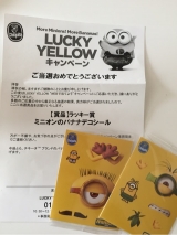 ミニオンのシール 1000名枠 ヘルシア紅茶 セブンスポット当選しましたーセブンに行く用事があってその時やってみたら当たったのでラッキー(^^)✌️シールはバナナに貼って遊んでみよう!みたいなやつだから長男とやってみようかな 2015/10/22