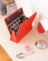 ボックス内にはピアスやリング、ブレスレットなどを見やすく分けて収納することができる大小のポケットが合計26個、ネックレスがからまず取り出しやすいホルダーが7個あります。底の仕切りスペースには大ぶりのブレスレットやコサージュなども収納可能。形・大きさがばらばらなアクセサリーがすべて一覧できるので選びやすく、コーディネイトの幅が広がります。ケースを閉じればすっきりとスリムになるので省スペース。置き場所に困りません。