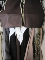 比較的頻繁に着用する衣類はタンスに入れずクロゼットやポールハンガーにかけていますがそのままにしておくと肩の辺りの埃が気になります コート類は季節ごとに入れ替えせずそのままかけてあるので一枚一枚コートカバーをかけてもそれほど苦にならない でも、日々使う衣類は毎回外すのが面倒そこで、古… 2015/12/15