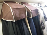 ホコリが溜まりやすい洋服の肩部分はしっかりガードしつつ、洋服の出し入れが簡単にできるよう長さをショルダー丈に設定。洋服全体を覆わないので何がどこにあるのか、も一目瞭然です。取り付け方法は、洋服をバーにかけたまま、“上から被せるだけ”と手間いらず。複数の洋服をまとめてカバーできるタイプで、用途や持ち主ごとに分類することも可能です(ブラウンとベージュの2色展開なので、色での分類もOK)。