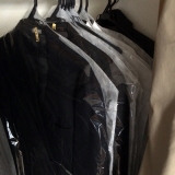 洋服の上からすっぽりかぶせるシンプルなカバーです。高級クリーニングの仕上がり品に使われる、片面不織布の業務用タイプ。通気性はしっかり確保しています。裾開きタイプなので洋服の丈を気にせずカバーできるのはもちろん、丈に合わせてカットしてもほつれることがありません。手軽にたくさんご使用いただけるリーズナブルな価格も魅力です。