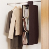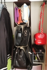 不動の人気を誇る吊り下げ式のバッグ収納を、 収納の巣のオリジナルアイテムとして2カラーで展開。置き場所に困りがちなバッグを1か所にまとめて収納。クローゼットにつり下げるタイプだから、洋服をコーディネートするときにバッグも一緒に選べるようになり、おでかけ前の準備がスムーズに。さらに、自由に動くやわらかな仕切りが使い勝手のよさを実現。5つの収納スペースがフレキシブルに変化して、カタチやサイズの異なるバッグを引き受けてくれます。バッグの定位置が決まると、使った後は空いているスペースに戻すだけなので、無理なくきれいな状態をキープ。大切なバッグ同士が触れて傷が付くことも防いでくれますよ。