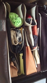 さんから、様々な大きさ形のバッグをひとまとめにバッグが使いやすく収納できる便利アイテム「バッグホルダー」をお試しさせて頂きましたやわらかな不織布の仕切りで5つの収納スペースを確保し、バック同士の触れに拠る傷つきを防ぎますまた、仕切りが自由に動くので、形やサイズがばらばらのバックもスッキリ収納… 2014/03/11