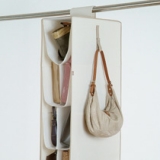 クローゼットやハンガーラックのすき間を有効に活用できる、通気性のよい不織布製のバッグ収納。スリムなボディながら収納力は抜群。カタチやサイズがばらばらのバッグでも、おもしろいように収納できるのがこのバッグ収納シリーズです。U型の仕切りと、その中央から垂れる傷つき防止の仕切りで収納スペースができ、そのスペースは収納するバッグに合わせてフレキシブルに変化。カタチやサイズの異なるバッグを引き受けてくれます。バッグの定位置が決まると、使った後は空いているスペースに戻すだけなので、無理なくきれいな状態をキープ。大切なバッグ同士が触れて傷が付くことも防いでくれますよ。