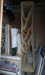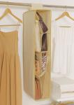 クローゼットやハンガーラックのすき間を有効に活用できる、通気性のよい不織布製のバッグ収納。幅わずか18cmのスリムなボディながら収納力は抜群。カタチやサイズがばらばらのバッグでも、おもしろいように収納できるのがこのバッグラックです。U型の仕切りと、その中央から垂れる傷つき防止の仕切りで7個のスペースができ、そのスペースは収納するバッグに合わせてフレキシブルに変化。天井部と底部には芯板を使用し、バッグの形をくずさないようスペースを確保しています。