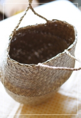 シーグラス2wayバスケットなら手に取りやすい場所で置きたいモノをさりげなく置いておけ、雰囲気のある“見せる収納”が完成!ハンドメイドで編み上げた、やわらかいタイプのバスケットなので持ち手同士を引き寄せて、バッグのように片手で持つことができます。また、折りこんだり、伸ばしたり、と2wayで使用可能!