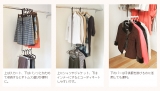 2本のベルトで取り付けるだけで部分的に2段バーにできる優れモノ。クローゼット内の欲しい場所にだけ設置できるのでスペースの無駄がなく、今まで洋服を数枚掛けていた幅で倍の数が掛けられるようになります!また、洋服同士の間にゆとりがなく出し入れがしにくい状態も、洋服を部分的に2段にすることで、ゆったり掛けられ出し入れがスムーズに。