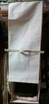 取り付け方は、天井部の面ファスナー部分をバーに巻き付けるだけ。「吊り下げたら天井が歪んだりしない?」という心配はいりません。このハンギングラックは吊り下げ時のたわみ防止に補強用の樹脂版を使うなど、強度にもしっかり配慮。しかも天井部以外の布部は手洗い洗濯ができ、永くお使いいただけます!モニター後「こんな風に使っています!」を写真付きブログで教えてくださいね。