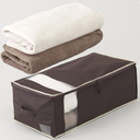 【スムーズアップケース】タンスの上やクローゼットの上棚、押入れの天袋など、高い所への収納がスムーズにできるように開発されたソフトケース。底板に厚手のボール紙をセットし、持ち手を下の方に付けることで、上げ下げのしやすさを実現。お子さんの手の届かない所に収納したい、というニーズにもお応えします。通気性の良い不織布製なので、シーズンオフの衣類、シーツやタオルケット、インテリアファブリックなどの収納にはぴったりです。使わない時は底板が2枚に分かれるので、コンパクトに畳めてスペースを取りません。
