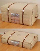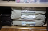 【ジャストフィットふとんケース】 他の布団ケースにはない使いやすさの秘密は風呂敷のように包み込む収納法。季節によって布団の嵩が変わると収納ケースはしわくちゃに…なんてストレスともサヨナラできますよ。