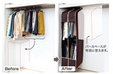 クローゼットをスペースいっぱいいっぱい使うってなかなか難しい!しかし、この商品なら、いけそう!中に、バーがブランコではいっていて、2段になってるんだ 2012/06/13