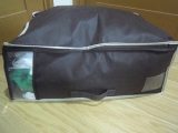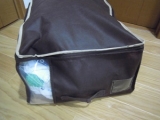 タンスの上やクローゼットの上棚、押入れの天袋など、高い所への収納がスムーズにできるように開発されたソフトケース。底板に厚手のボール紙をセットし、持ち手を下の方に付けることで、上げ下げのしやすさを実現。また、2箇所の側面に透明窓が付いていて中身の確認も簡単です。通気性の良い不織布製なので、シーズンオフの衣類、シーツやタオルケット、インテリアファブリックなどの収納に最適。使わない時は底板が2枚に分かれるので、コンパクトに畳めてスペースを取りません。