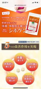 シボゲン シボゲンの特徴は、 体重、体脂肪、中性脂肪、 ウエスト周囲径を減らして 高めのBMI値の改善に 役立つ働きをしてくれる事!! さらに アフリカマンゴノキ由来エラグ酸、 Lカルニチン、αリポ酸、カテキン、 乳酸菌、難消化性デキストリンなどの ダイエット成分が入っていて、 ダイエ… 2019/09/29