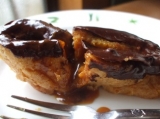 温めたデセールキャラメルにスプーンで切り込みを入れると