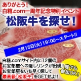 【企画概要】 2月15日(火)1900 白箱comサイト内に、12のお宝部屋への隠しリンクが出現! お宝部屋をイチ早く探して最高級松阪牛をGETしよう!! ■イベント期間 2011年2月15日(火)1900 賞品がなくなり次第終了 ■賞品 最高級松阪牛A5級の サーロインステー… 2011/02/15