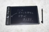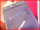 パネル上部にあるボタンをポチィっと押したら、書いた文字が 「パッ!」と消せる書き込んだ文字や絵が一瞬で消せるんです このboogieBoardは書いて消して5万回、しかも紙もインクも使わ ないからとってもエコ!付属のスタイラスペン、そして指先でも 何でも自由に書けるんです と説明されている… 2010/09/01