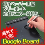 モニタープレゼント内容 電子ペーパー黒板 Boogie Board(ブギーボード) ★さらば、紙ようこそ「ブギーボード」!★ メモを書きたいとき、とっさに紙が出て来なかったり、 紙があっても書く物が見当たらなくて困った経験、ありませんか? 書いて消して5万回! 1日20回 描いたり消した… 2010/09/06