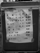 藤沢ビックカメラ裏の、遊行通り5丁目商店街にある 『軽食堂 味よし』さん通り沿いにあるメニュー看板興味深々のうさこ商店街とはとても言えないような路地を入ってみる『味よし』さんは、カウンター4席だけのおばあちゃんのやっている小さなお店もちろんお水はセルフです自分でついで下さいカツカレー … 2011/08/04