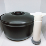 余ったご飯をこの容器に移して付属のポンプで空気を抜くことで、中のご飯の酸化を遅らせ、ご飯が黄ばむのを遅らせます。