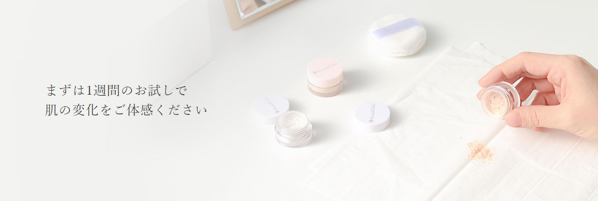 お試しいただく商品は「ミネラルファンデーションFトライアルセット」↓↓