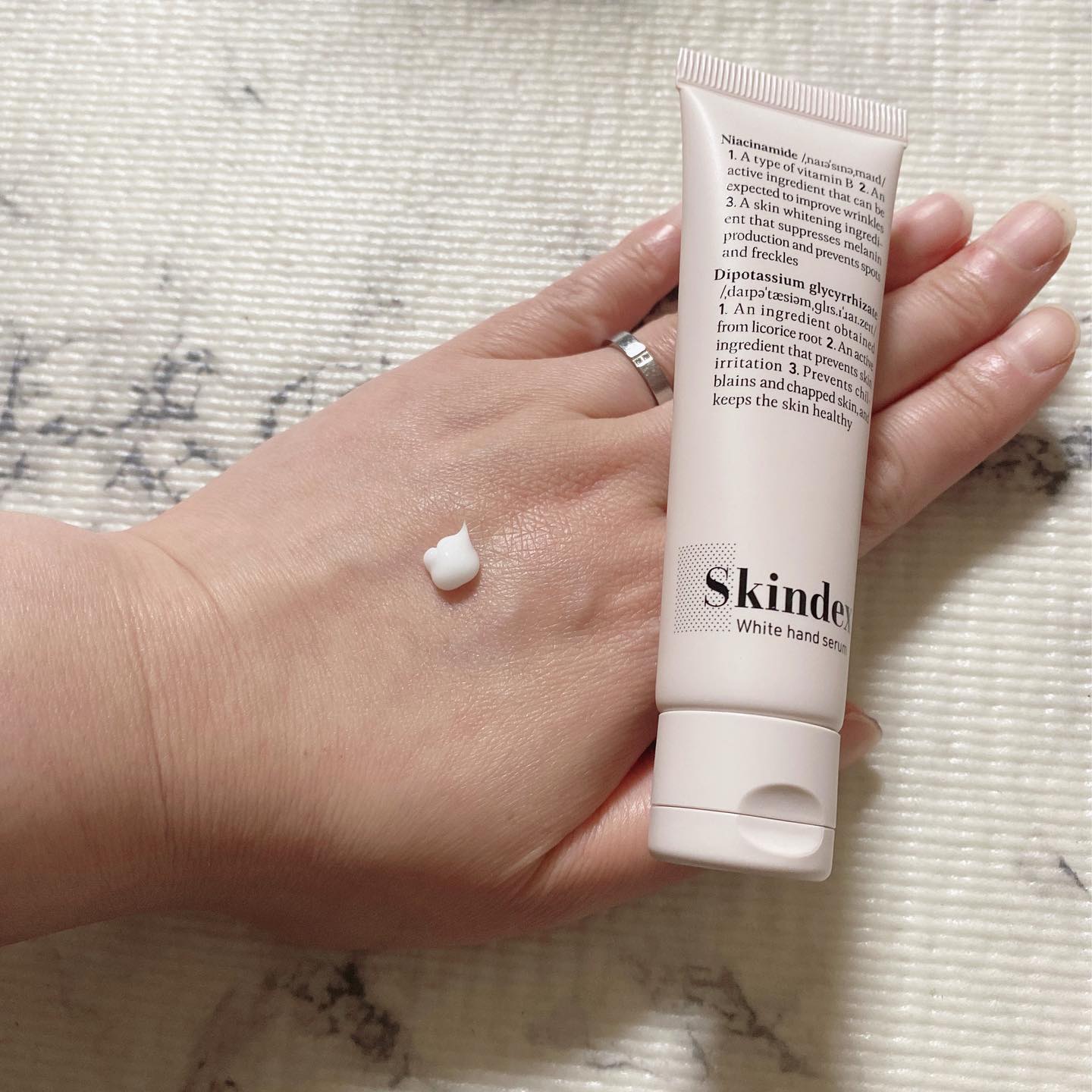 . 欲しい機能が詰まったセラム 年齢が出やすい部分。 顔はもちろんですが…デコルテや首 そして、手。。。 手を見ると年齢がわかるといいます。 手肌がカサカサしてキメが乱れ ごわつきのある手肌なので 手肌を綺麗に見せてくれる ハンドケアアイテム欲しいなと 思っていました。 ガーデニングが趣味なので 手肌の日焼けも気になっていました。 そんな悩みに!! Skindex ホワイトハンドセラム でケアしています♪ これ1本で! 「シワ改善」「美白」「抗炎症」の 3つのケアが叶います。 時短スキンケア出来て嬉しいですね。 ナノオイルカプセルや3種の ヒアルロン酸💎 コラーゲン、アミノ酸、植物セラミド などを贅沢に配合しているので 少量で徹底ケア出来ます。 手肌に出してみると、普通のハンドケア コスメに見えますが! 使用感は、とってもリッチ♪ でも、べたつき無しでケア出来ます。 保湿力がとても高いので! ガサガサ・ゴワゴワ肌も しっかりケア出来ると思いました。 香りは、ほんのり甘い香りがします❁⃘ 手荒れ対策もバッチリ(^^)v ツボクサエキスなども配合されて いるので、ささくれやカサカサケア にも最適だと思いました。 リッチなハンドクリームですが 肌馴染みは、とっても良いです。 少量でも伸びが良いのでコスパが 良いし!アイクリームのような ケア力があります‼️ 余計な物は入っていないので 安心して使えるし、内容だけを みていると、高エイジングアイクリーム 何じゃ無い!?と思うほど。 パケは、コンパクトで持ち歩きにも 良さそうだと思いました。 スレンダーコンパクトなので バッグに入れても場所取らず! こちらを使いたいと思った決めては ”肌フローラを整える マルトース・ショ糖縮合物、 NMF(天然保湿因子)を構成 する10種のアミノ酸、 うるおいを補給する2種の 植物セラミドで肌状態を高め、 3種のヒアルロン酸とコラーゲンで うるつやハリ肌へ。”という 商品説明でした。 本当に、超しっとり♪ でも、べたつき無しでスマホも 触れます。 手肌のシワも目立たない! シワの間を埋めてしっとり 滑らか美肌に見せてくれますよ お洒落なパケも気に入りました。 無くなったら、リピしたい。 真冬のガサガサ手肌も! このSkindex ホワイトハンドセラム なら、しっかりケア出来ると確信♪ 手荒れやかさつきに悩んでいる 方に是非お勧めしたいハンドケア コスメです\(^O^)/ 姪っ子が美容師をしているので プレゼントしてあげようと 思っています。 10のフリー処方だから、赤ちゃんの いるママにも◎ 本当に良いコスメに出会えました♡ #PR #skindexファンサイト #Skindex #ホワイトハンドセラム #ハンドクリーム #pr #monipla #skindex_fan