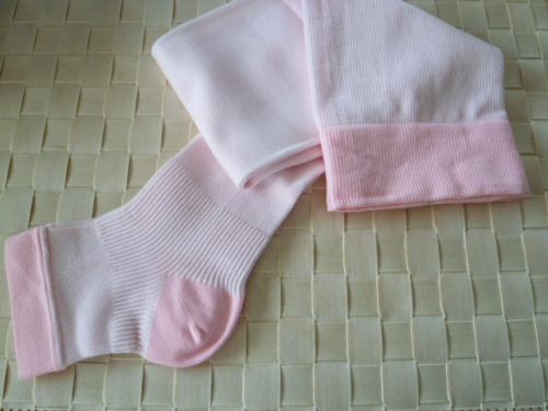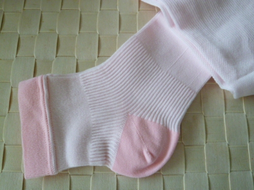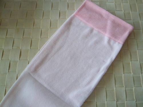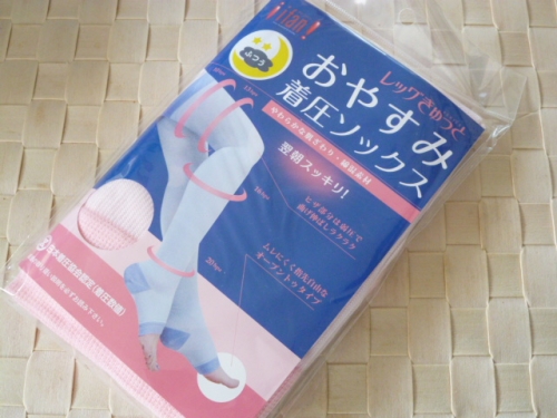 着圧ソックスは初体験、 寝ている合間に履いているだけでむくみがスッキリするからうれしい ただ、色がピンクと白まあパジャマの下だからいいけどね 2013/04/03