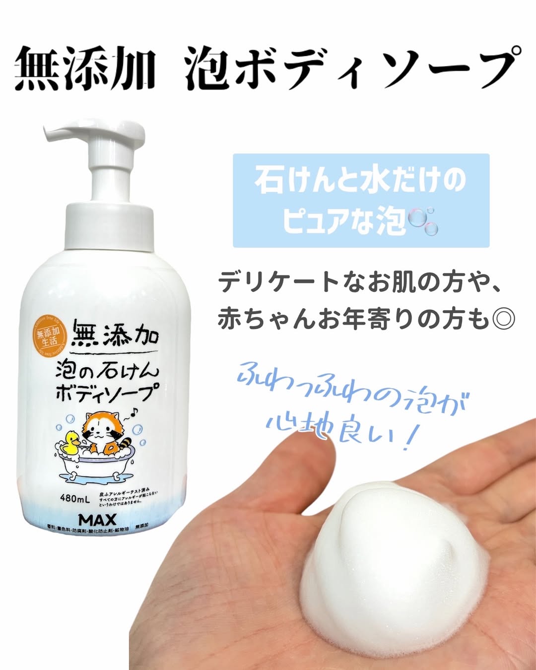 . . リピートアイテム🫶✨✨ . . ✔︎泡で出てくるから小さなお子様にも使いやすい! ✔︎6つの無添加!水とカリ石ケン素地だけのピュア! ✔︎植物生まれのクリーミーな石けんのふわっふわの泡が、 肌を包みこんでくれる! ✔︎顔も身体もOK! . 『成分がシンプル』かつ『無添加』なのが嬉しい☺️🩷 . 泡🫧で出てくるから簡単だし、楽しいみたいで 3歳の娘も自ら体を洗ってくれる💁♀️✨✨ . ラスカルのプリントも可愛いよ🥰 . . #PR #株式会社マックス #無添加 #ボディソープ #泡ボディソープ #敏感肌 #乾燥肌 #無香料 #ボディウォッシュ #石けん #ボディケア #無添加生活 #マックス石鹸 #マックスコスメ #monipla #soapmax_fan
