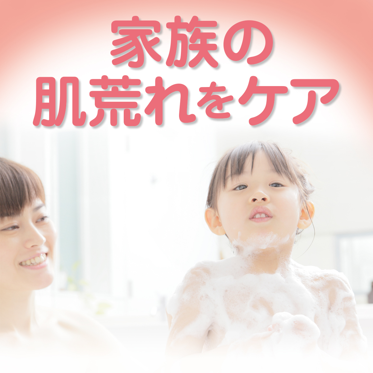 家族の肌荒れを洗浄ケアします。家族の素肌にやさしい“無添加”の石けん泡に、植物由来の“肌荒れを防ぐ”成分をプラスしました。