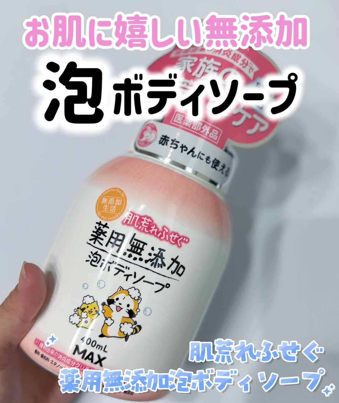 他の投稿をみる ▷▷@nagi_skin_care 肌荒れ防ぐ 薬用無添加泡ボディソープ 400ml ¥660(税込・私調べ) 家族の肌荒れをケアしてくれる 無添加の石鹸泡に植物由来の 肌荒れを防ぐ成分をプラス✨ 泡タイプなのですすぎも楽♡ 赤ちゃんでも使えます👶 ポンプを押すとたっぷりの ふわふわの泡が🫧 柔らかい泡で肌あたりがほんとに 優しい☺️ 子供達も喜んで使ってます♡ 家族全員で使える商品て魅力的です✨ 是非チェックしてみてください☑︎ #PR #株式会社マックス #肌荒れ #薬用 #無添加 #ボディソープ #泡ボディソープ #ボディケア #石けん #無添加生活 #ボディウォッシュ #敏感肌 #乾燥肌 #マックス石鹸 #マックスコスメ #monipla #soapmax_fan
