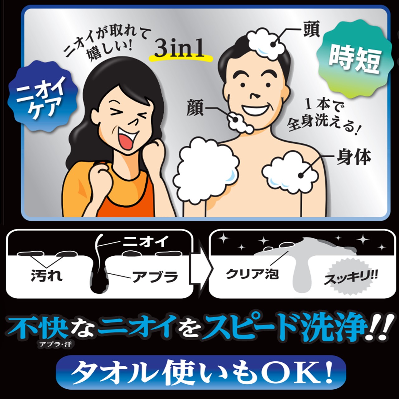シャンプー・洗顔・ボディソープがこれ1本で! 全身(頭・顔・身体)の不快なニオイを“泡”でクリア!