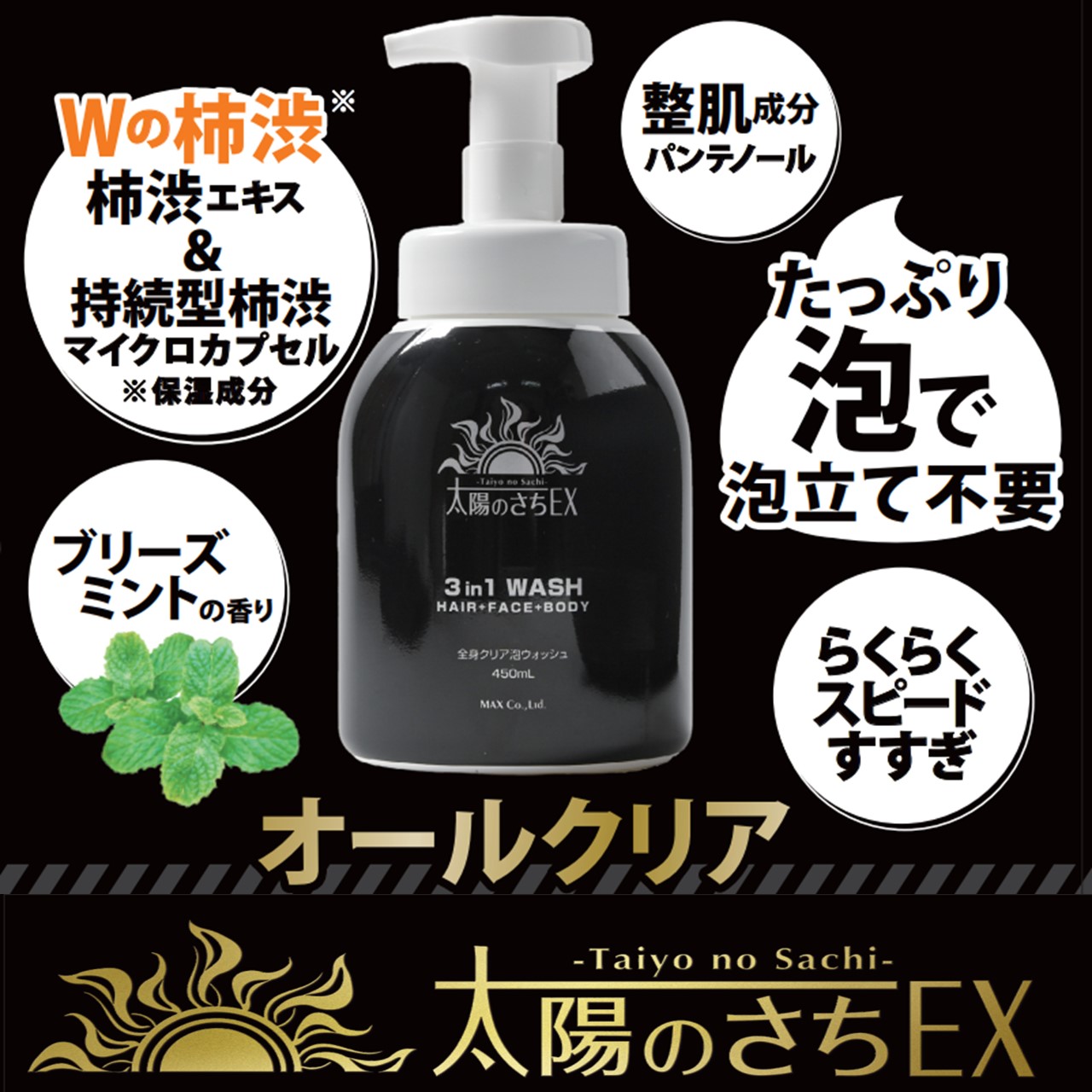 ※Instagramに投稿する際には #太陽のさち #太陽のさちEX #全身洗浄 #全身洗浄料 #オールインワン #柿渋 #ニオイケア #体臭ケア #デオドラント #全身シャンプー #シャンプー #洗顔 #ボディソープ #マックス石鹸 #マックスコスメ #マックスコスメオンラインショップ #monipla #soapmax_fan のハッシュタグをつけて投稿してください!