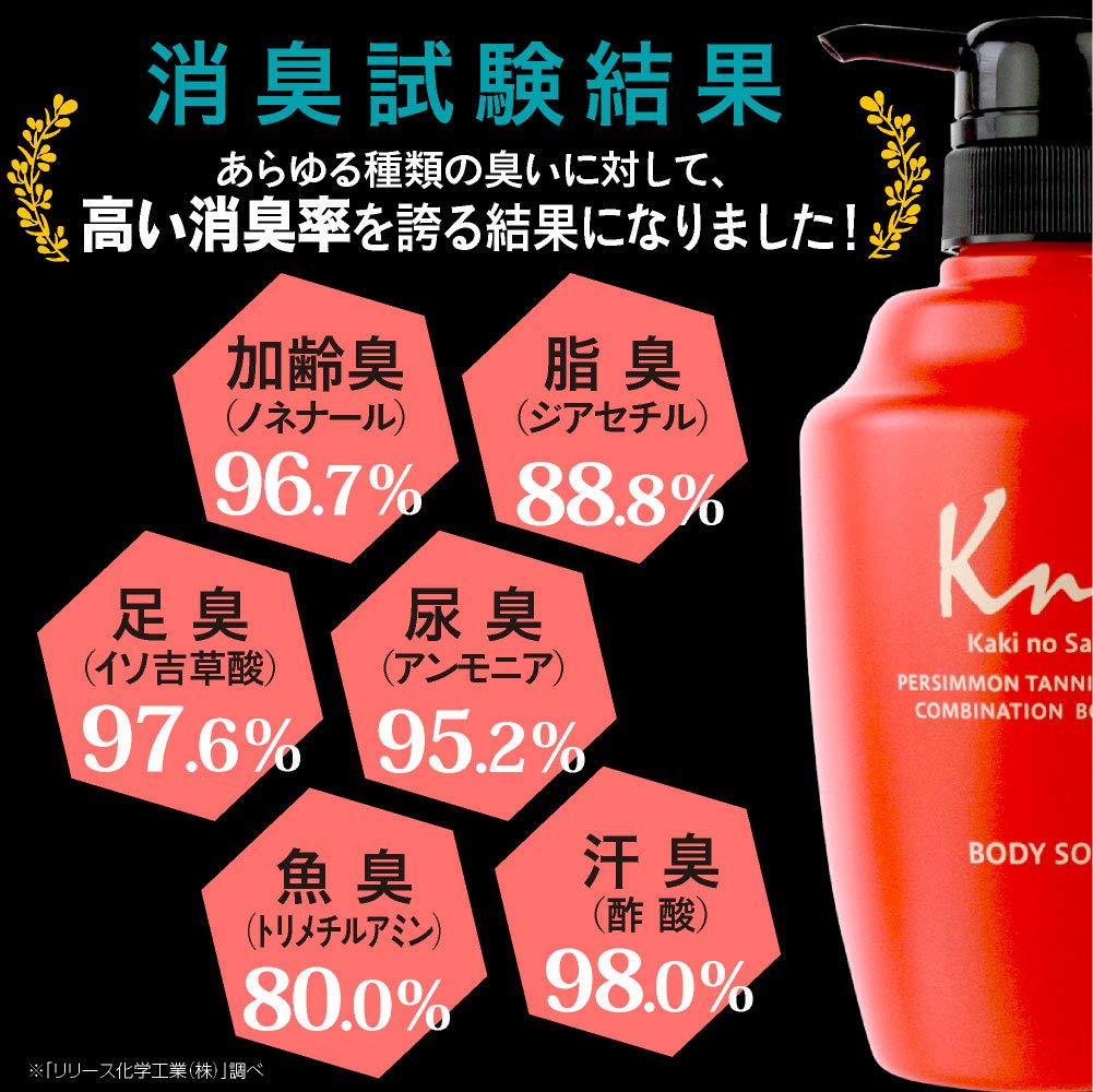 ニオイの原因菌を薬用成分で殺菌&消毒、柿の渋み成分「カキタンニン」がニオイを発生させないお肌に。