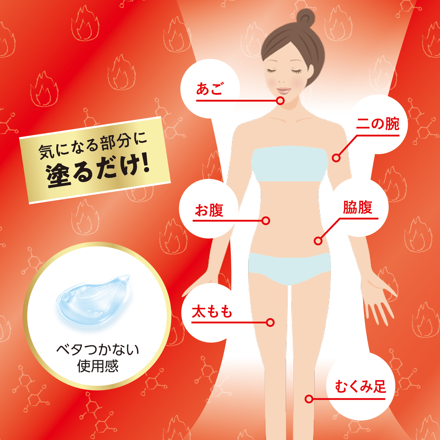 気になる部分に1日2回塗るだけでひきしめる商品です!