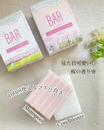 #PR #株式会社マックス #thebar #サステナブル #固形シャンプー #シャンプーバー #shampoobar #固形コンディショナー #コンディショナーバー #conditionerbar #サクラ #さくら #桜 #sakura #マックス石鹸 #マックスコスメ #マックスコスメオンラインショップ #monipla #soapmax_fan The BAR シャンプー Sakura 80g 🌟美しさとやさしさあふれるグリーンシャンプー&コンディショナー。 髪・頭皮だけでなく、地球にもやさしい。 ✨✨✨✨ 1905年創業の石けんメーカーの技術の結晶、the bar 一般的なシャンプー、コンディショナーと比べ水分95u0025減、 有効成分をギュッと凝縮❗ プラスティックを使わない製品です。 箱から漂う桜のふんわり甘い香り。 ちょっとフルーティーな趣があります。 シャンプーはピンク色、コンディショナーバーよりも一回り小さくギザギザがあります。 コンディショナーバーはしっとりとした感触で体温でとける感じがします。 シャンプーは固形ながら、クリーミーな泡で泡立ちも良かったです。 洗っている最中もきしまないし、絡まらない。 コンディショナーは、お湯に濡れた髪や手で触るとじんわりとオイル化。 スルスルと指通りもよく、しっとりとした仕上がりでした。 きしんだ感じ、ベタつく感じもなくて、仕上がりも満足の行くものでした。 固形タイプとしては、かなり使いやすいと思います🥰 2023/07/17