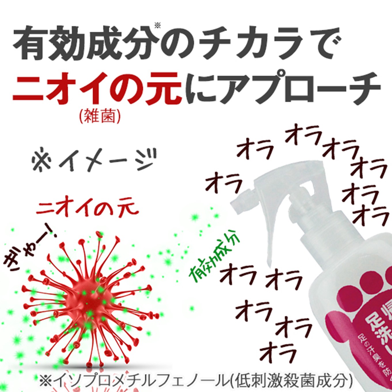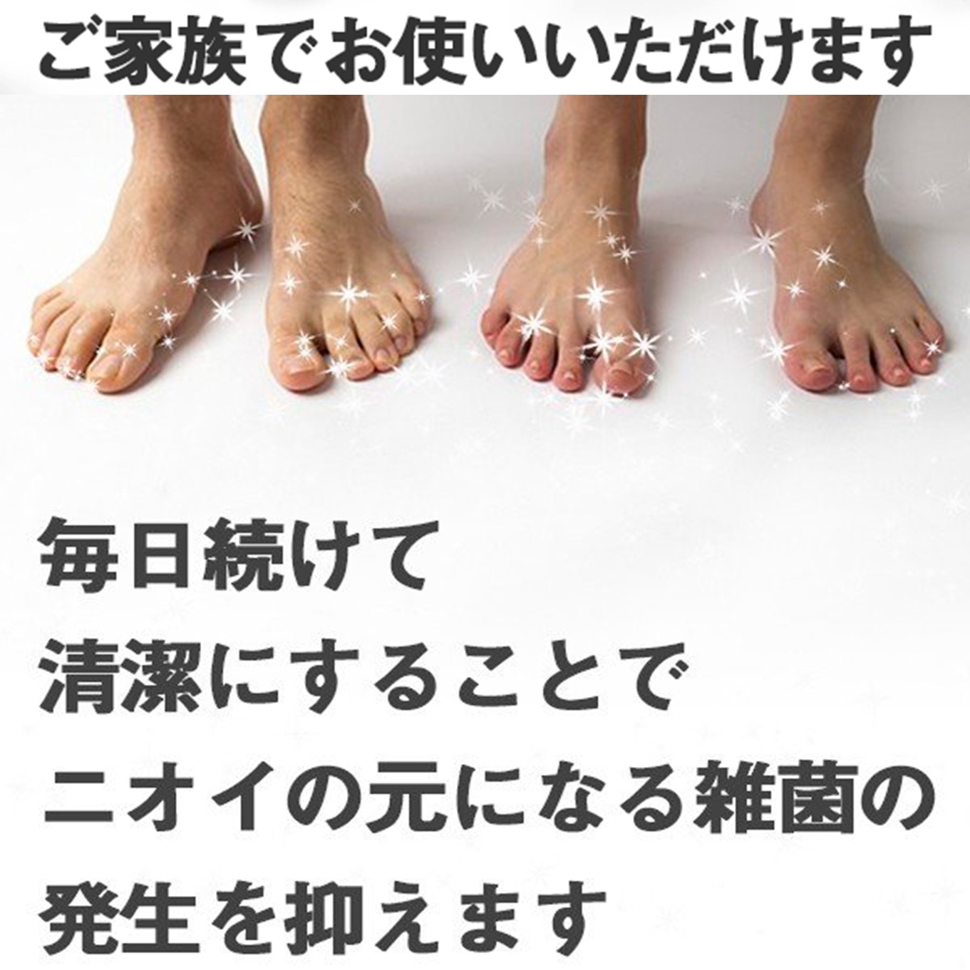 足指、足甲、足裏の気になる臭いをスッキリ。 ニオイの原因菌を殺菌、汚れ・汗を洗浄。
