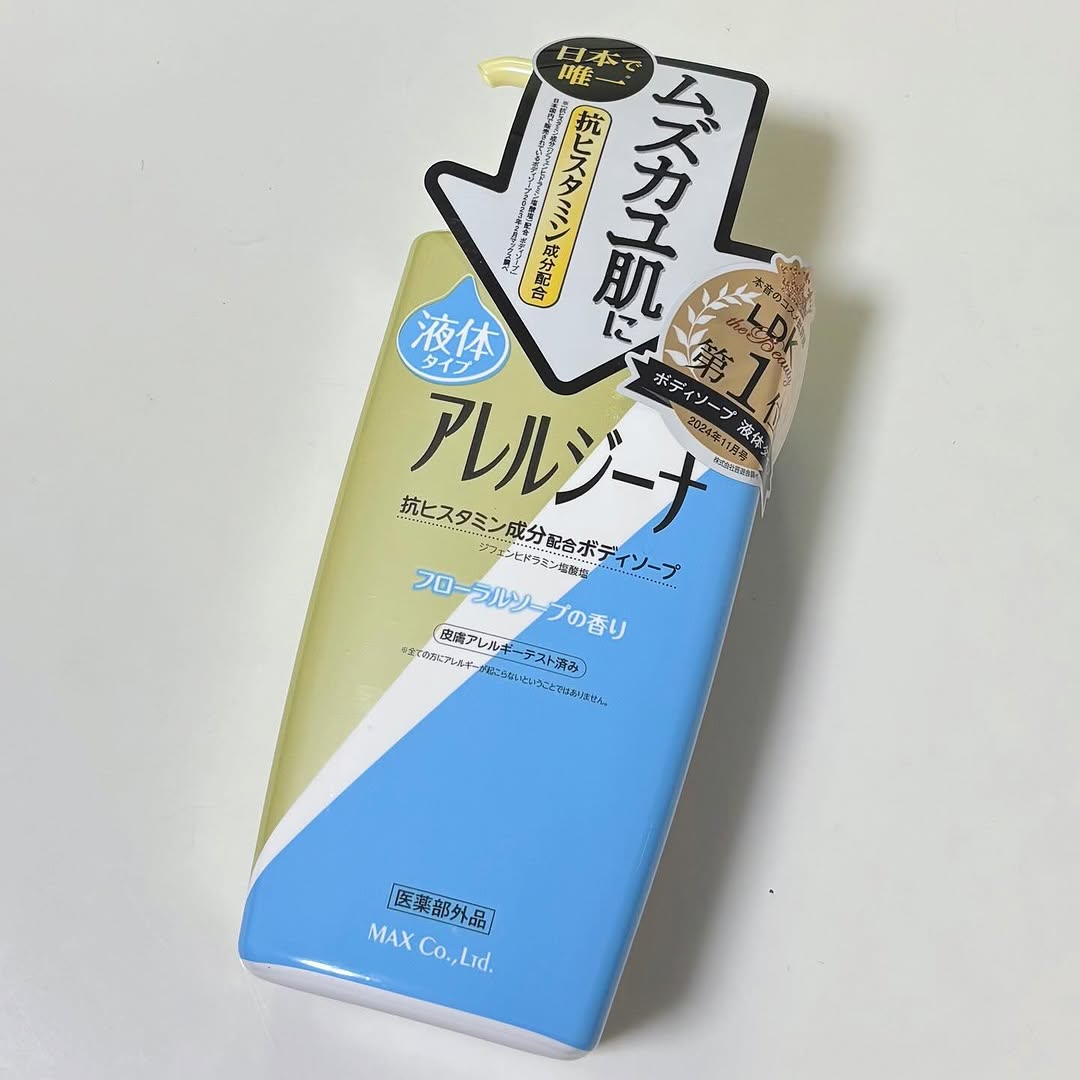 アレルジーナ 抗ヒスタミン成分配合 ボディソープ 液体タイプを使ってみました✧ ムズカユ肌を「洗う」簡単ケア! 抗ヒスタミン成分配合のボディソープです✼ 乾燥が気になる季節は、保湿をしても肌がムズ痒いのが悩みでした。 とろみのあるテクスチャーで泡立ちが良く、フローラルの清潔感のある香りも良かったです♡ しっとり感やヌルつきが残るかな?と思いましたが、優しい洗い心地なのにスッキリ洗えました◌ ͙❁˚ #PR #株式会社マックス #抗ヒスタミン #抗ヒスタミン成分配合 #抗ヒスタミン成分配合ボディソープ #アレルジーナ #ボディソープ #薬用ボディソープ #ムズカユ肌 #敏感肌 #乾燥肌 #ボディケア #ジフェンヒドラミン塩酸塩 #マックス石鹸 #マックスコスメ #monipla #soapmax_fan
