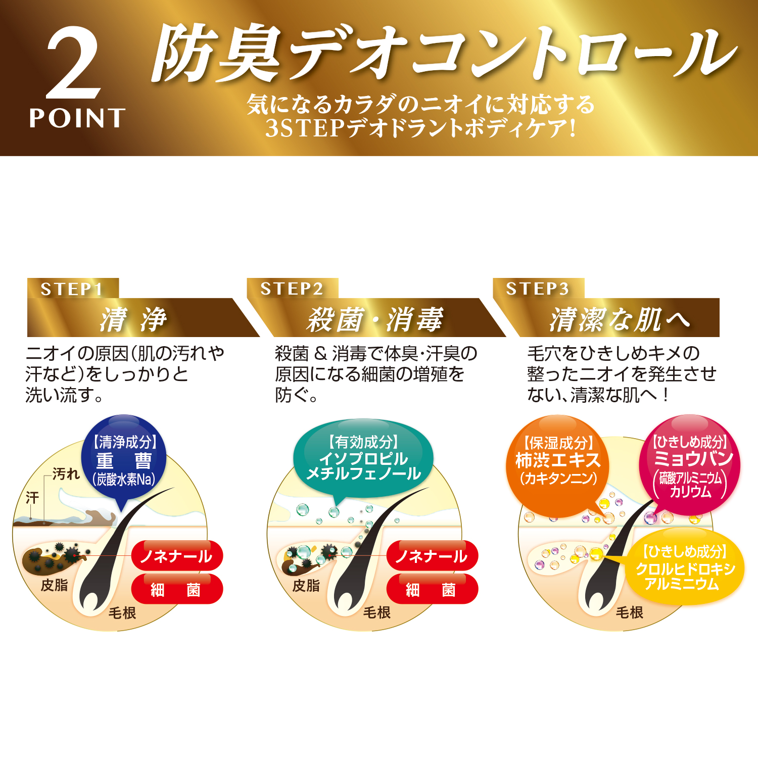 体臭・汗臭を防いでケアする。