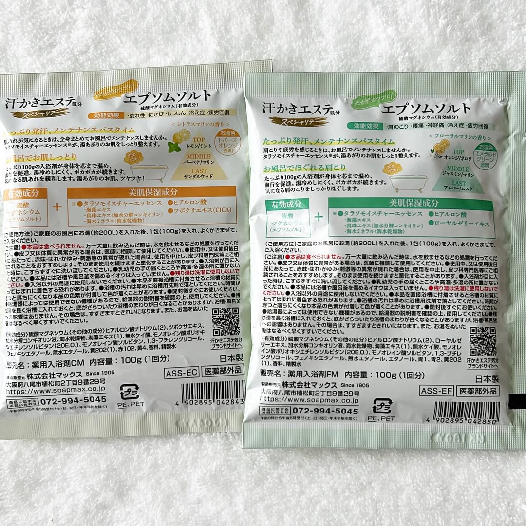汗かきエステ気分 スペシャリテ エプソムソルト 分包100g🛁 たっぷり100gの入浴剤が身体を 芯まで温め、血行を促進。 湯冷めしにくく、ポカポカが続きます。 ・肌荒れに効くシトラスマリンの香り ・肩こりに効くフローラルマリンの香り お湯の色もとても綺麗です🧡💚 冷え性なので体がポカポカして 良いです✨ 香りも良くて癒されます!! #PR #株式会社マックス #汗かきエステ気分 #汗かきエステ #入浴剤 #バスソルト #バスタイム #お風呂グッズ #マックス石鹸 #マックスコスメ #マックスコスメオンラインショップ #エプソムソルト #肩こりに効く #半身浴 #肌あれに効く #monipla #soapmax_fan