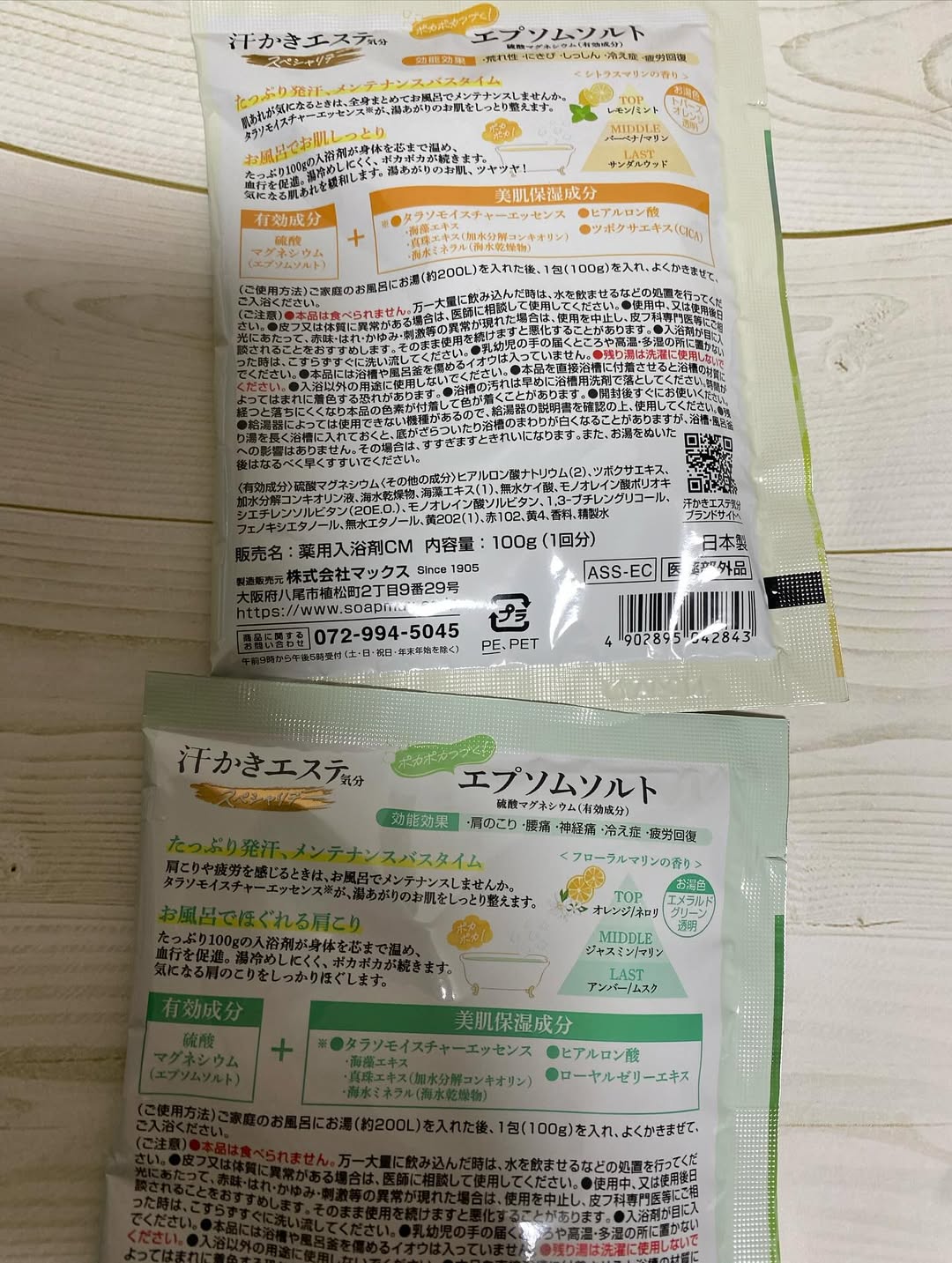 汗かきエステ気分 エプソムソルト ・フローラルマリン ・シトラスマリン をお試しさせていただきました! いつも汗かきエステ気分シリーズの入浴剤は使わせていただいているわたくしですが・・・ 最近はすごく暑いのでなかなか湯船に浸かる気になれなかったんですが、こちらお試しさせて頂く機会を得ましたので、よいチャンス☆ たっぷり100グラム入ったエプソムソルトの入浴剤です。 40度位のお湯で半身浴をするとしっかり汗をかけて気分爽快です。 酒飲んだむくみもちっとは解消できるかもと期待。 お風呂上がり、ポカポカが持続☆ 個人的にはフローラルマリンの香りがとても好み。 シトラスマリンも素敵ですが。 これからもリピートしたい商品です☆ #PR #株式会社マックス #汗かきエステ気分 #汗かきエステ #入浴剤 #バスソルト #バスタイム #お風呂グッズ #マックス石鹸 #マックスコスメ #マックスコスメオンラインショップ #エプソムソルト #肩こりに効く #半身浴 #肌あれに効く #monipla #soapmax_fan