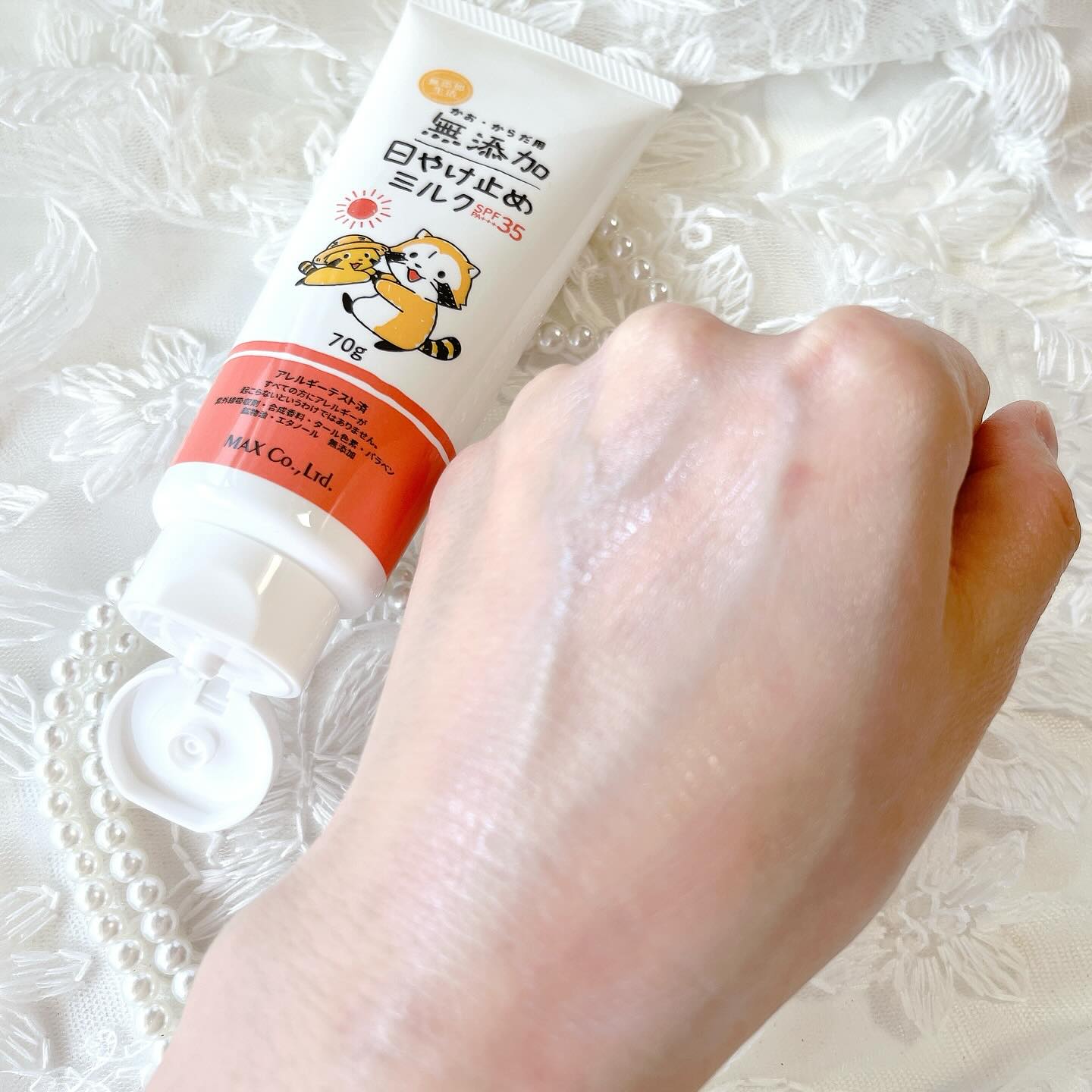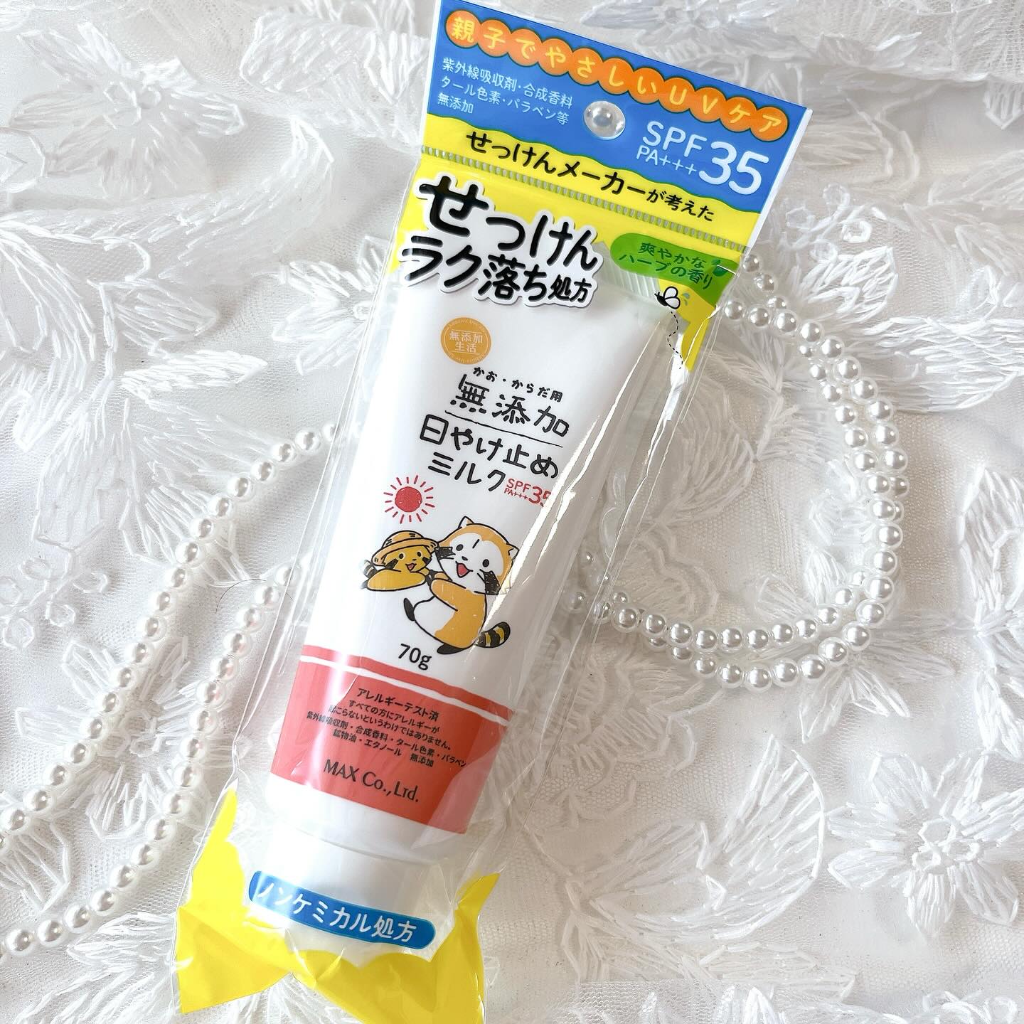 𓈒𓏸┈┈┈┈┈┈✾┈┈┈┈┈┈𓏸𓈒 石けんメーカーの @maxcosme1905 様より 石けんでオフできるノンケミカルUVクリーム 無添加 日やけ止めミルク チューブタイプ をお試しさせて頂きました𓂃𓈒𓏸 SPF35・PA+++でお出かけやレジャーでも 充分な日焼け対策が出来ます なめらかなミルククリームのテクスチャーで 伸びはよくスーッと肌になじみます 伸びが良いので少量ずつ使っています 塗った後もベタベタしないので 子供たちにも使いやすい 大きなボトルタイプを自宅で使って こちらのチューブタイプを 外出時の塗り直しに使っています 持ち運びに便利なサイズなので バックの中でも邪魔にならずによいサイズです サラリとした塗り心地も親子で使いやすい ノンケミカルの日焼け止めクリーム 紫外線吸収剤、合成香料、タール色素、 パラベン、鉱物油、エタノール、 全てフリーの無添加処方 いつもの石鹸でオフできるのも 子供たちに使いやすいポイントです #PR #株式会社マックス #無添加 #無添加日焼け止め #日焼け止めミルク #UVケア #UVミルク #日焼け止め #ノンケミカル #無添加生活 #マックス石鹸 #マックスコスメ #monipla #soapmax_fan
