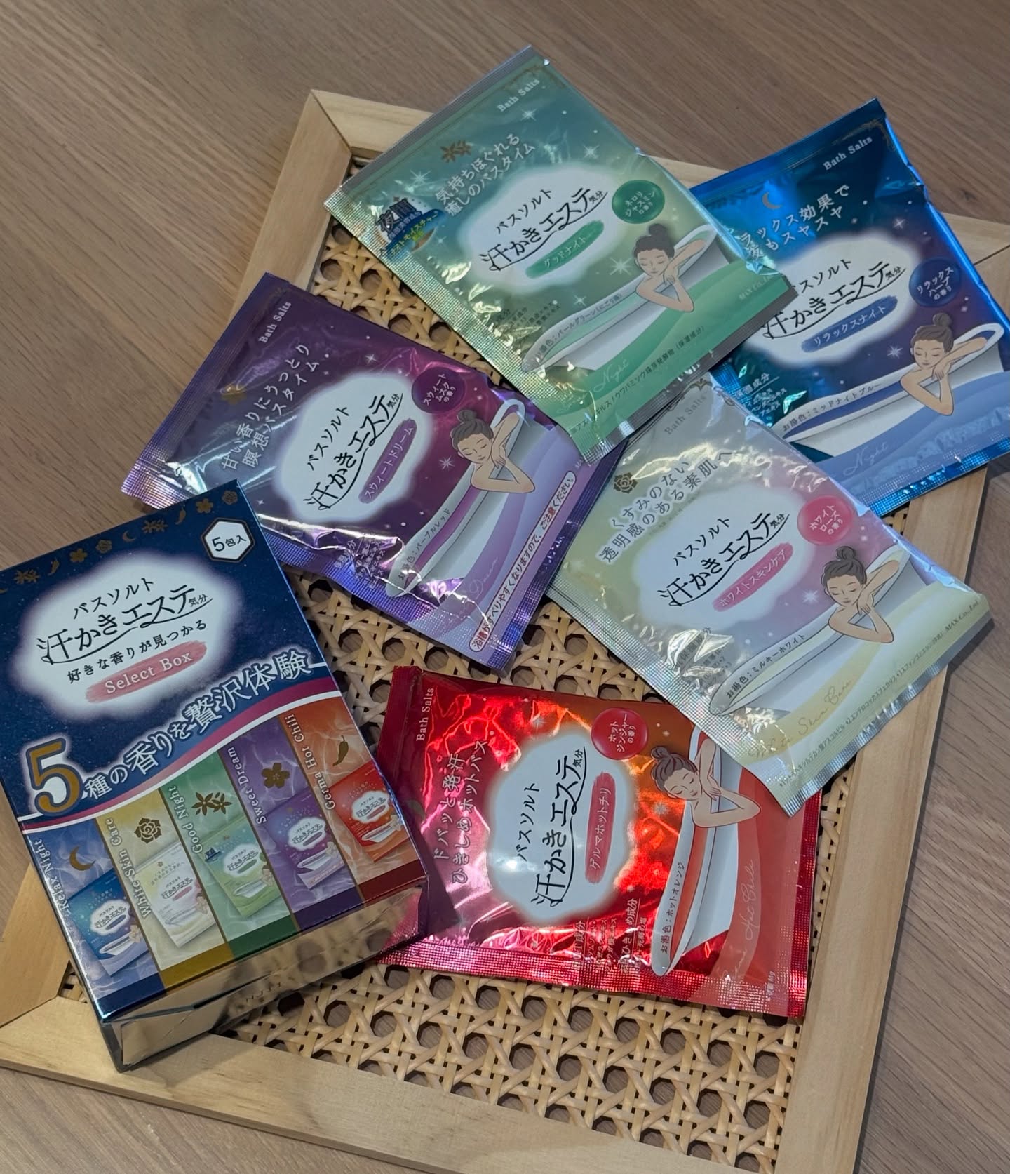 . - - - - - - - - - - - - - - - - - - - - - - - 汗かきエステ気分 分包セレクトボック - - - - - - - - - - - - - - - - - - - - - - - じんわり汗かき˗ˏˋ ホッと ˎˊ˗ バスタイム🛁 お肌引き締め成分に海塩が入っています✨ バスソルト汗かきエステ気分は天然塩と死海の塩が使われています🏝️ 今回は5種類使いました☺️ ❏ リラックスナイト💙 リラックスハーブの香り ❏ ホワイトスキンケア🩷 ホワイトローズの香り ❏ グッドナイト💚 ネロリジャスミン香り ❏ スウィートドリーム💜 スウィートムスクの香り ❏ ゲルマホットチリ❤️ ホットジンジャーの香り どの香りもいい香り😍 私はスウィートドリームが1番お気に入りです🥰 これからの時期代謝も落ちるからゆっくり良い香りにつつまれながら入浴したいな🛀💕 #PR #株式会社マックス #汗かきエステ気分 #汗かきエステ #バスソルト #入浴剤 #入浴 #お風呂 #お風呂グッズ #マックス石鹸 #マックスコスメ #monipla #soapmax_fan