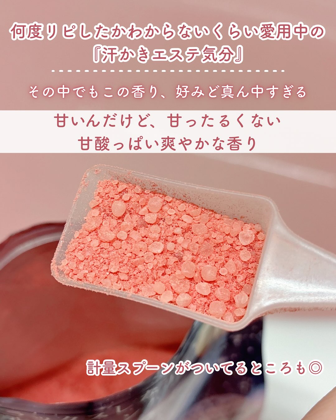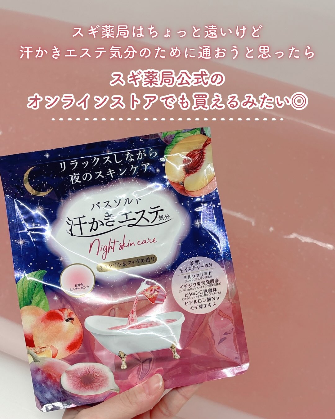 スギ薬局限定発売🩷 もぎたてネクタリンと完熟フィグの香りに包まれる 汗かきエステ気分 ナイトスキンケア ネクタリン&フィグの香り500g 何度リピしたかわからないくらい愛用中の 『汗かきエステ気分』🛀 その中でも この香り、好みど真ん中すぎる👍🏻✨ 甘いんだけど、甘ったるくない 甘酸っぱい爽やかな香り🩷 お湯色が、ミルキーピンクで こちらは、娘の好みにドンピシャ😊✨ 家族で、リラックスしながら 夜のスキンケアバスタイムを楽しんでます🛀 計量スプーンがついてるところも◎ スギ薬局はちょっと遠いけど 汗かきエステ気分のために通おうと思ったら スギ薬局公式の オンラインストアでも買えるみたい☺️👏🏻 #PR #株式会社マックス #汗かきエステ気分 #バスタイム #お風呂 #汗かき #バスソルト #ネクタリンフィグ #汗かきエステ #入浴剤 #スギ薬局 #スギ薬局限定 #ネクタリン #フィグ #マックス #マックスコスメ #monipla #soapmax_fan